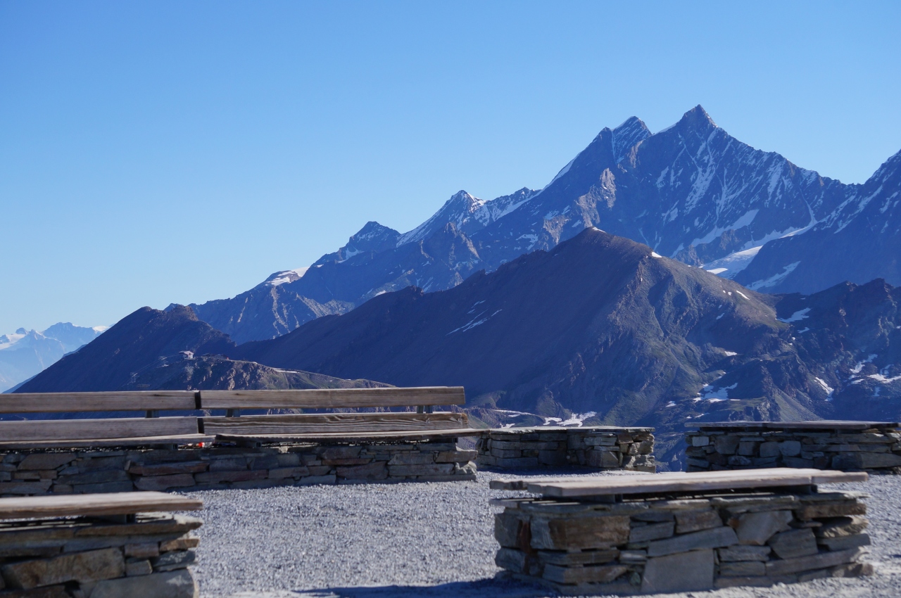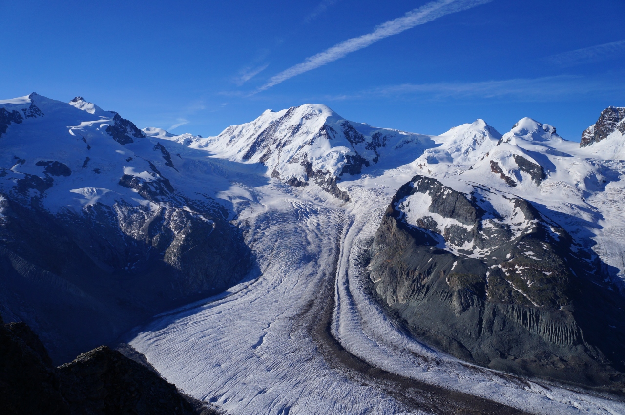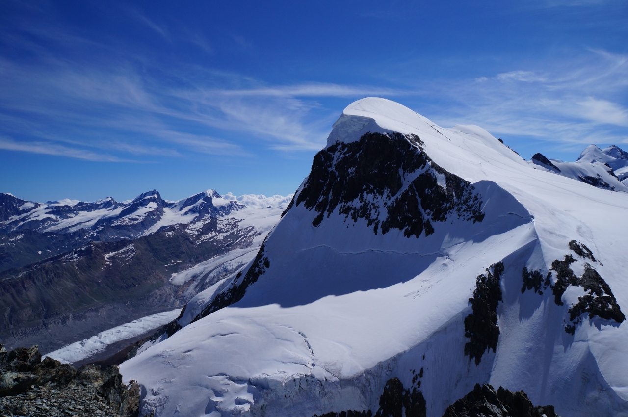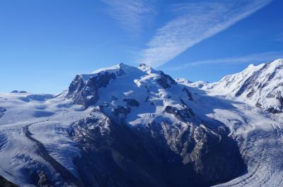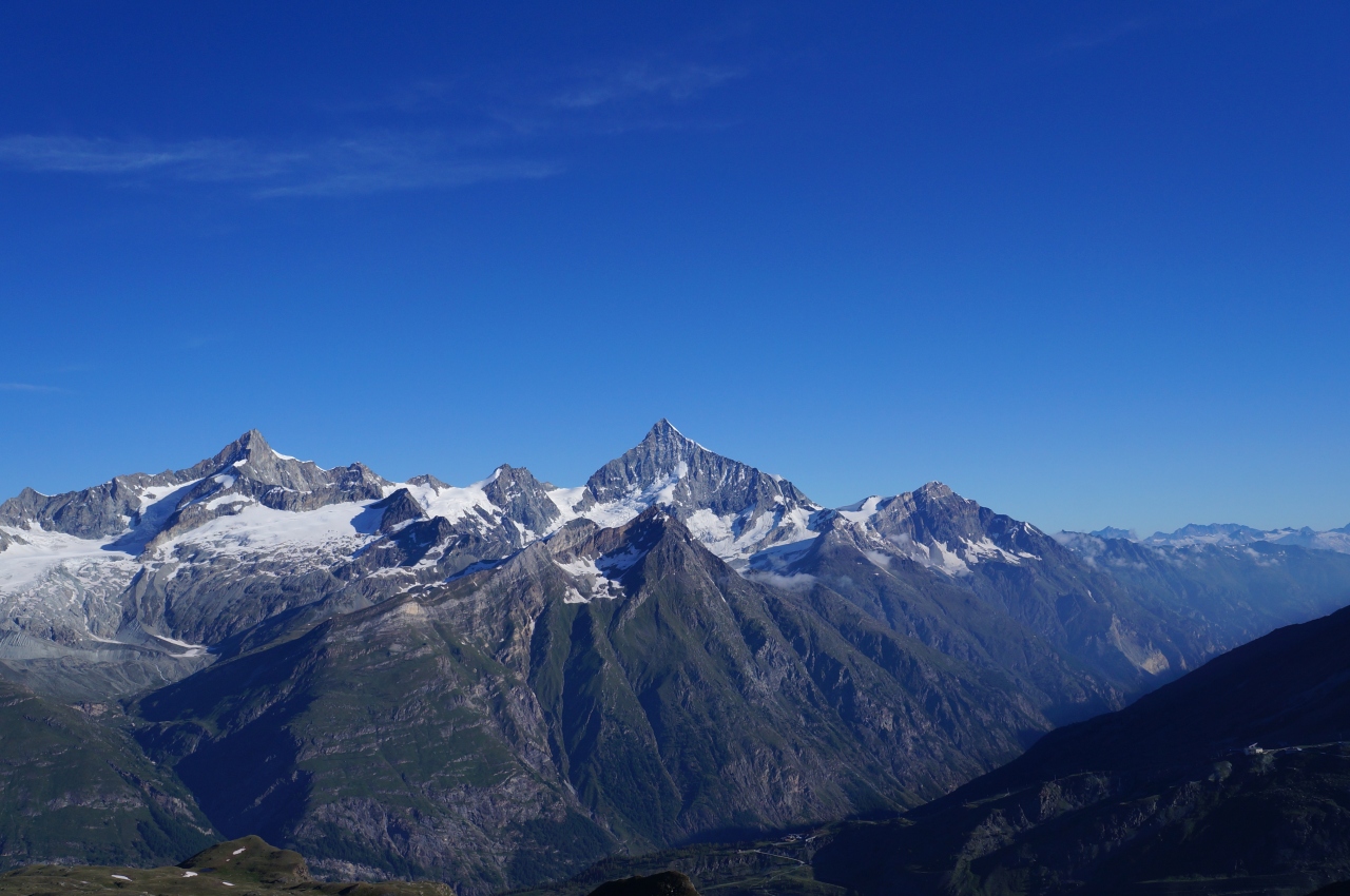 モンテローザ、リスカム、ボリュックスの山々の連なりを見ていると、マッターホルンが孤高と言われる訳がよく分かります。- 旅行時期