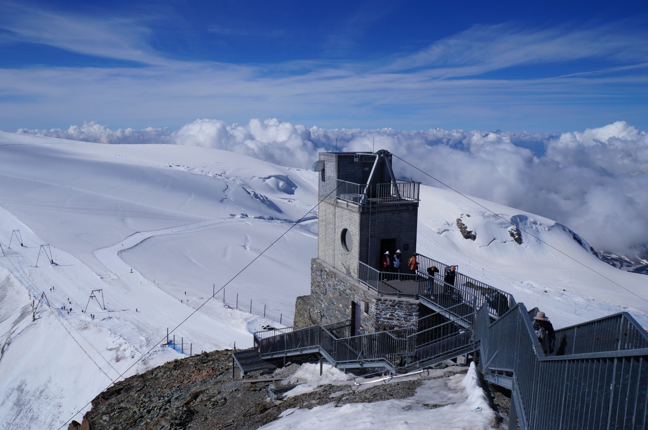 天気が良ければ、展望台からはアルプスの山の連なりが見れ、標高3883mの展望台のキーンと冷えた空気と相まって、最高の気分です!