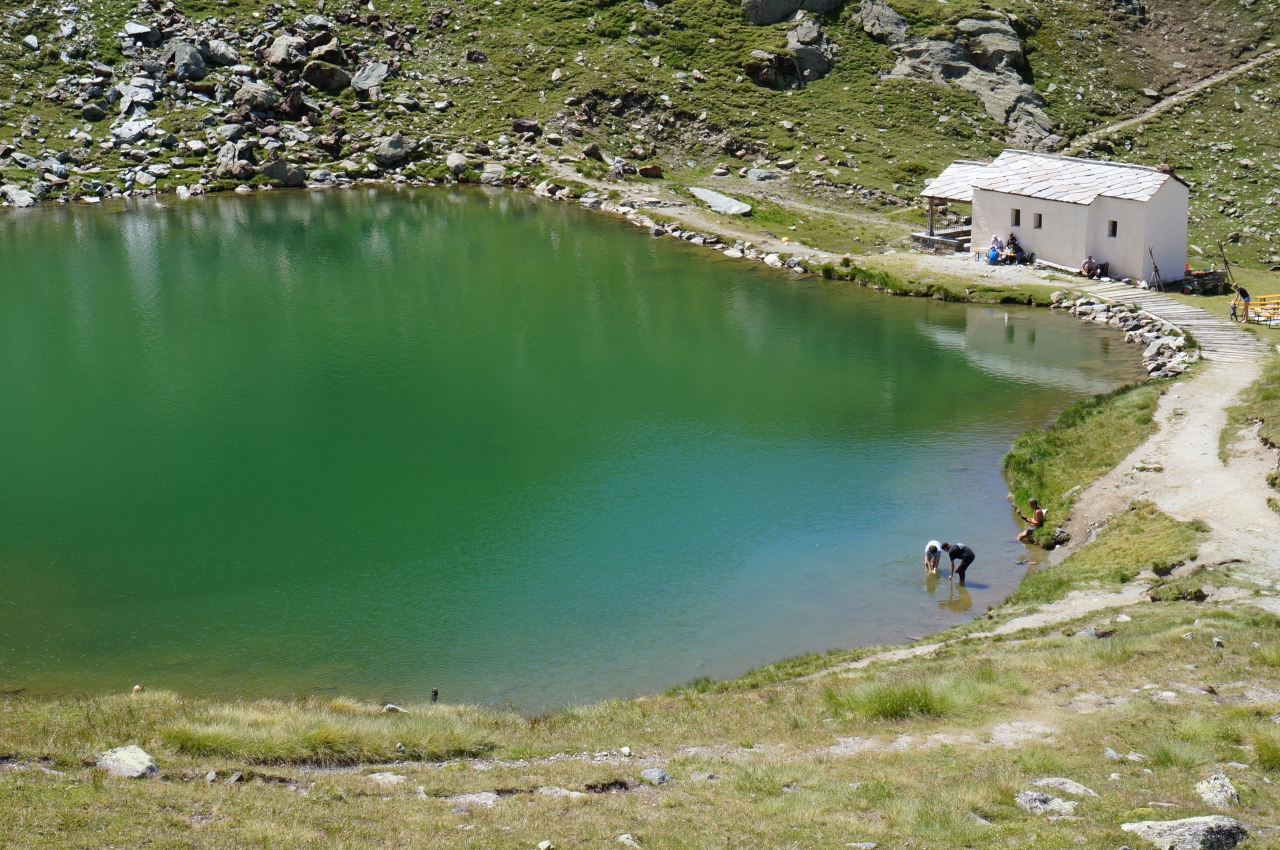 湖の畔には礼拝堂があって、マーモットの巣穴もあるらしく、時々マーモットが出てきては、ボテボテボテと走り回っているのがかわいらしいです。