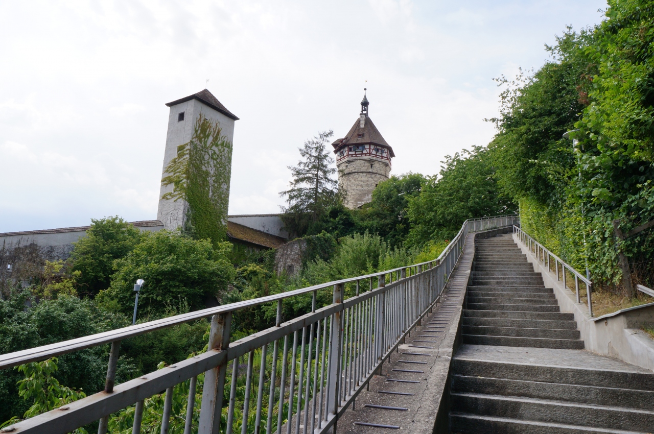 ウンターシュタット通りからの階段は、ブドウ畑とシャフハウゼンの旧市街の町並みが見渡せてロケーションがよかったです。
