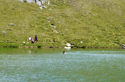 気温21度、風も冷たいというのに、湖水浴している人がいるのでビックリ。