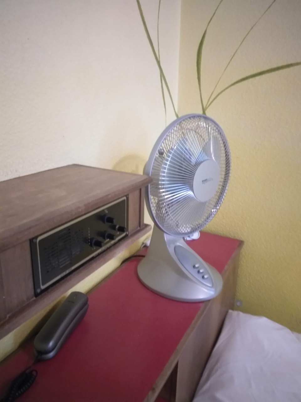 部屋に冷房はなく、扇風機のみ。