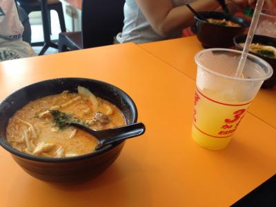 ラクサはスパイシーだけど、ココナツミルクのスープでマイルドな味がしました。辛いのが苦手な人でも食べやすいと思います。パクチーのようなハーブが入っているので、苦手な人は苦手かもしれません。
