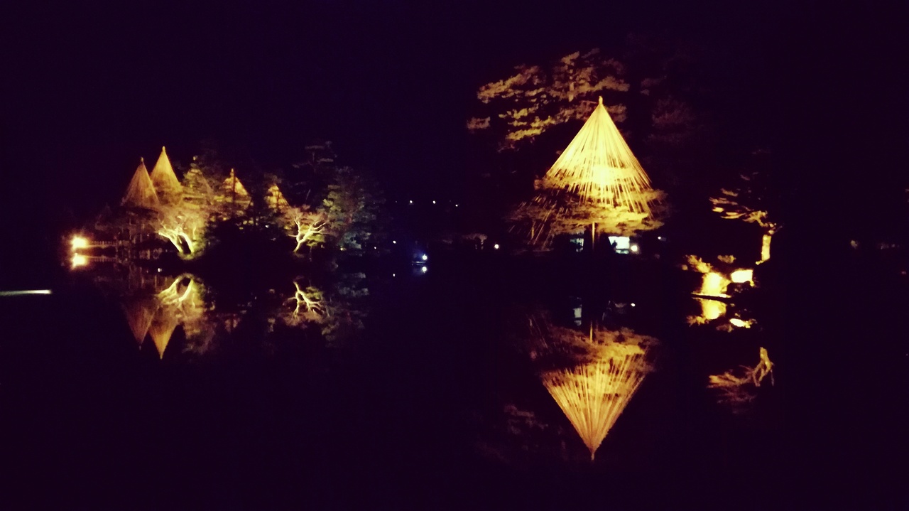 でも、雪吊りに灯りが照らされる様は大変美しく、風情がありました。