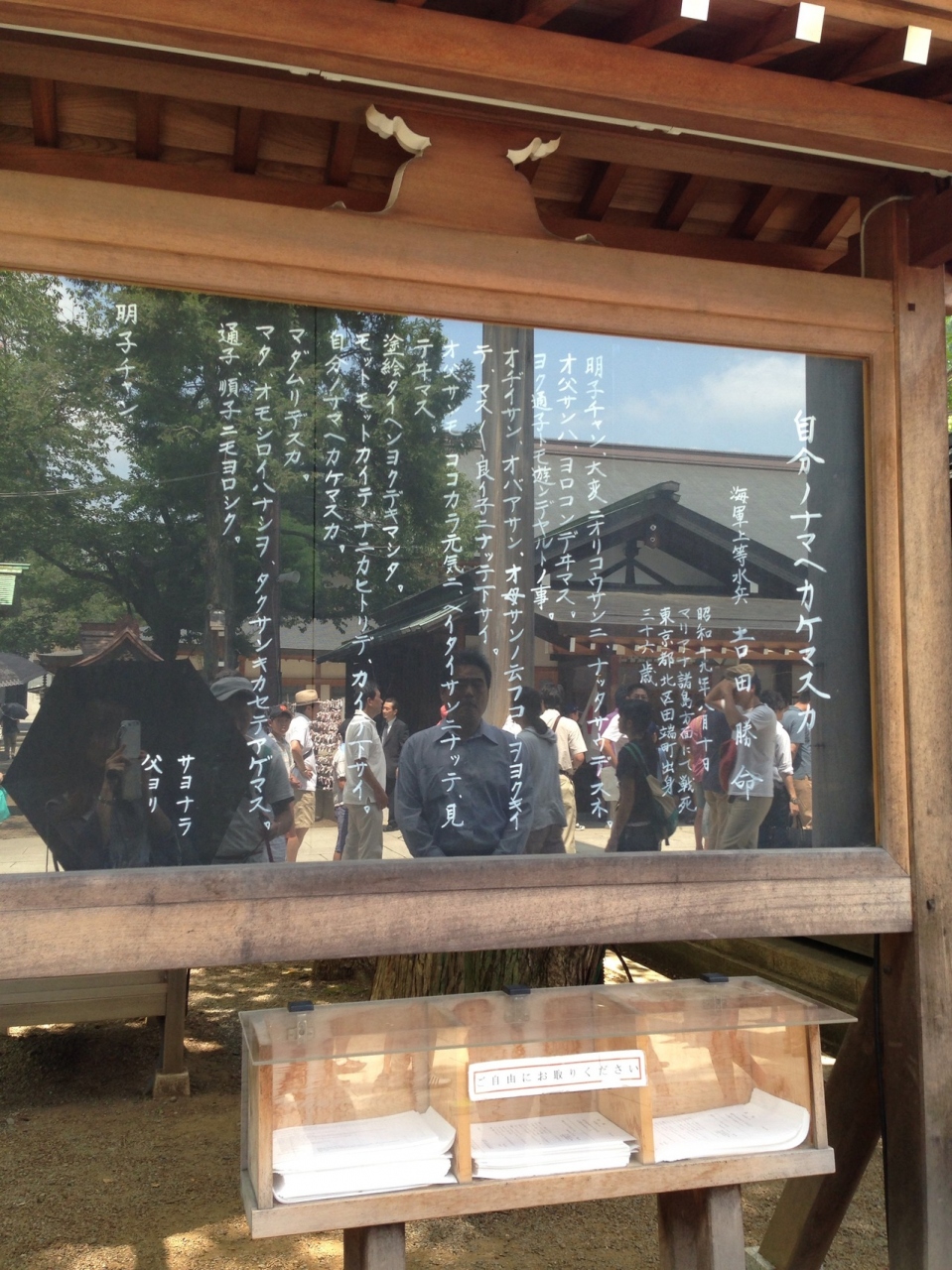 靖国神社に行った際、太平洋戦争や戦没者の展示をしている遊就館も訪れました。おびただしい数の戦没者の写真や手紙には胸を締め付けられました。戦争の展示は見ていると苦しくなる位だったけど、見ておいてよかったです。