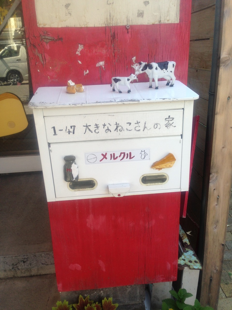 赤い外観と玄関先に置いてあるオブジェ?がかわいくてついふらりと立ち寄りました。チーズと蜂蜜のお店です。持ち帰りまで時間が長いから買えなかったけど、いろんなチーズがあってすごく美味しそうでした。試食もさせてもらえます。