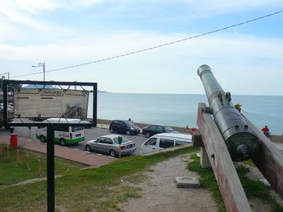 海に面してそびえる砲台が有名な、ペナンの歴史散歩に欠かせない場所・・・ではあるのですが、中の展示が殆どないので、入場まではしなくても良かったかなぁというのが正直な感想です。入場料は高くないし、後悔するほどではなかったですが。洞窟みたいな穴が数点あって、そこに説明文と写真があって、という感じ。砲台は外からも見えるし、遺跡?というより今は公園みたいな感じです。