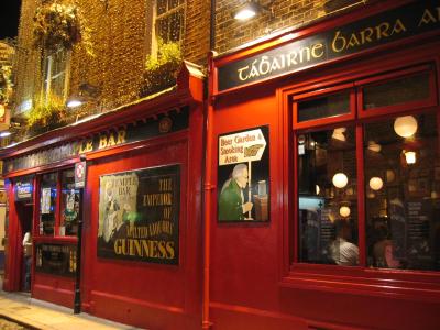 テンプルバー地区でいちばん有名なバー、temple barです。外観の赤い壁と絵がダブリンに来たー!って感じで良いなと思いました。