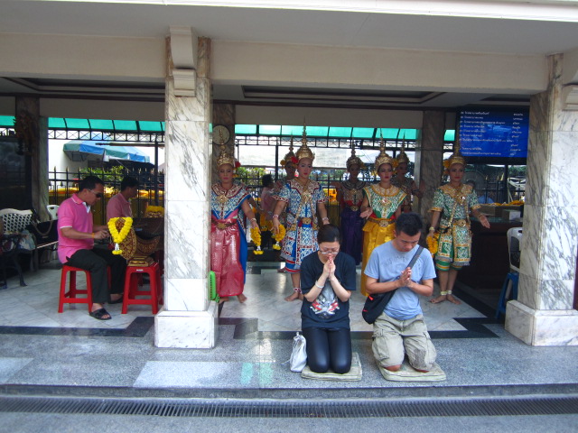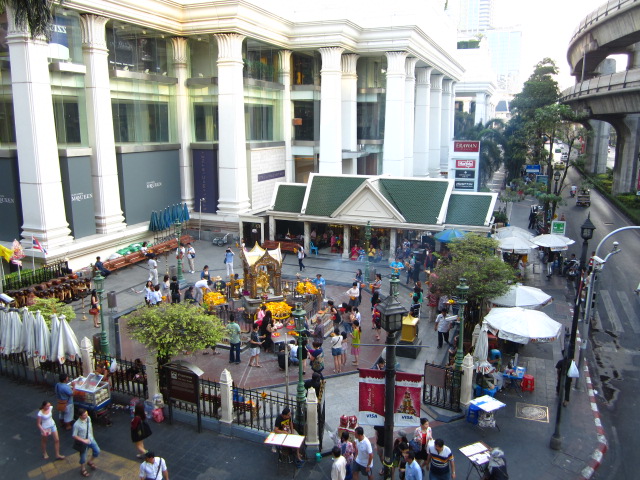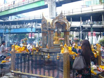 チットロム駅を出て連結の歩道を歩いていたら、どこからともなくタイ舞踊の音楽と歌声が・・・都会の真ん中で、こんな宗教的な場所がドーンとあるのは不思議な光景でした。