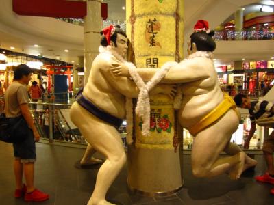 クリスマスの格好したお相撲さんの像もシュールでした。(年始に行ったらクリスマスとニューイヤーの飾りがたくさんあった)