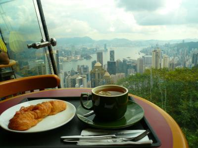 ピークタワーにあるカフェ(pacific coffee company)で朝ごはんを食べたのですが、窓の外に絶景が広がっていてすごく優雅な気分になれました。