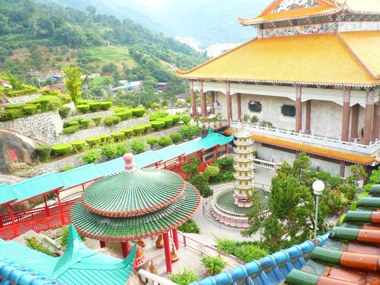 ペナン中心部にある重厚なクーコンシーとか中国寺院とはちょっと雰囲気が違って、色使いなどアジアっぽい派手さを感じたお寺でした。