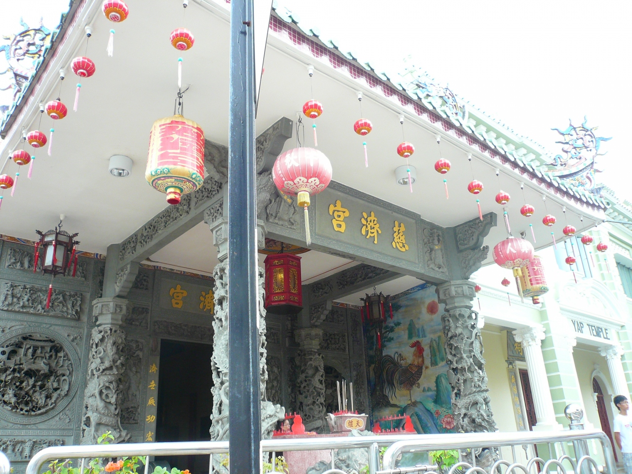 ペナン島は中国寺院が色々ありますが、ここはとくに色彩や装飾が鮮やかで、隣に洋館が建っているのが面白いなと思いました。