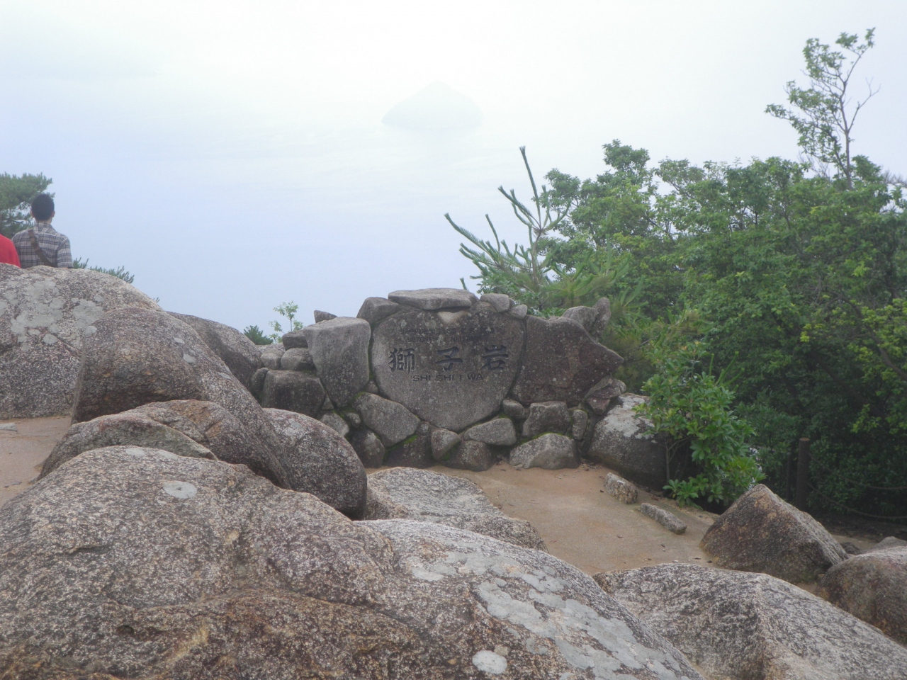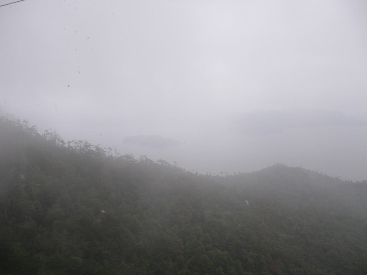 宮島の最高峰標高約535メートルの霊山「弥山」。私が行った時は、地上はまずまずのお天気でしたが、ロープーウエィ山頂口では、濃霧で10m先視界は全く見えず、伊藤博文は弥山頂上からの眺めを「日本三景の一の真価は頂上の眺めにあり」を堪能したかったのですけどね、危険ですし断念しました。土地の人の話ですと、猿の被害が多発してるので、ロープーウエィ山頂口のコインロッカーに無駄な荷物を置いて、軽装で本堂まで行ったほうが良いとのことでした。
