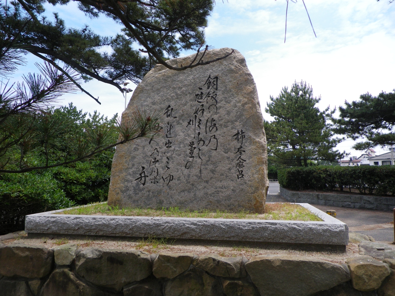 宿泊の慶野松原荘前に、柿本人麻呂の「飼飯(けひ)の海の 庭よくあらし刈薦(かりごも)の 乱れ出づ見ゆ 海人(あま)の釣船 」の碑が有りました。サンセットを眺めながら、古に想いを馳せるのも、中々良いものです。