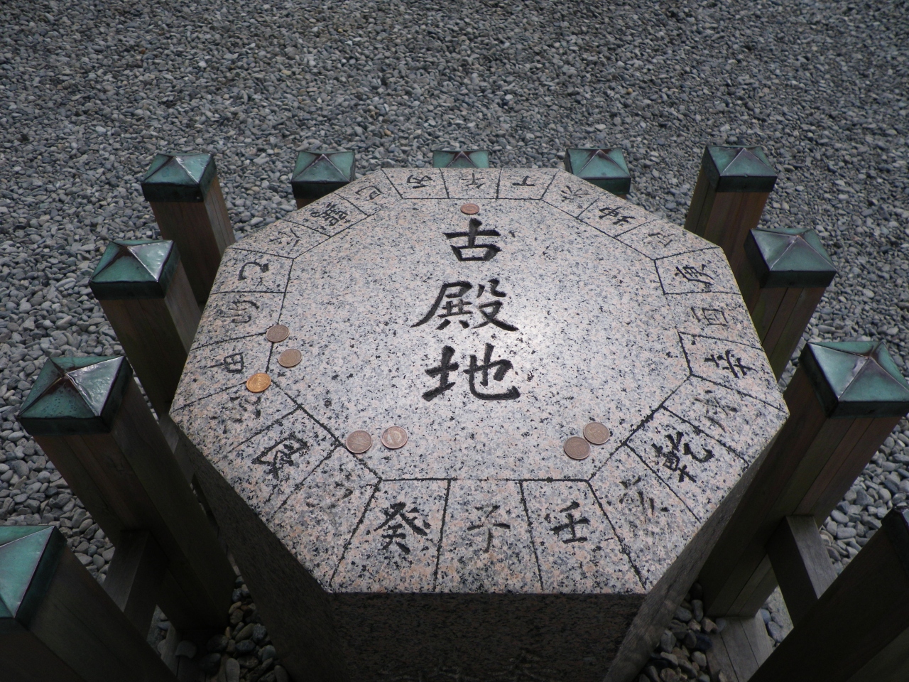 古殿地(こでんち)と言う石柱の立つ場所は、昭和11年の御造営まで御神座のあった神聖な位置なのだそうです。