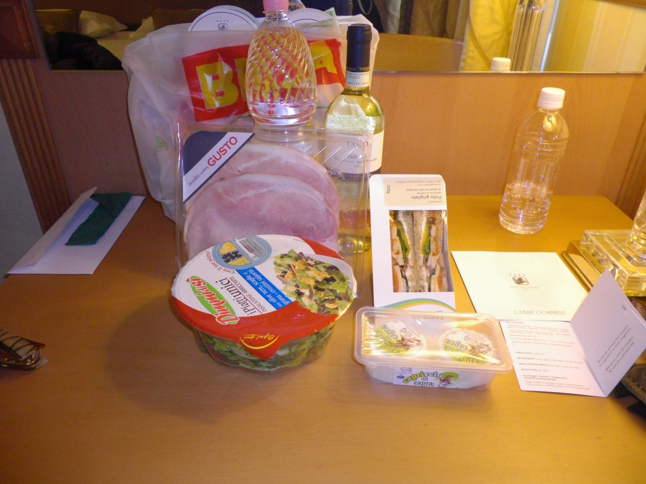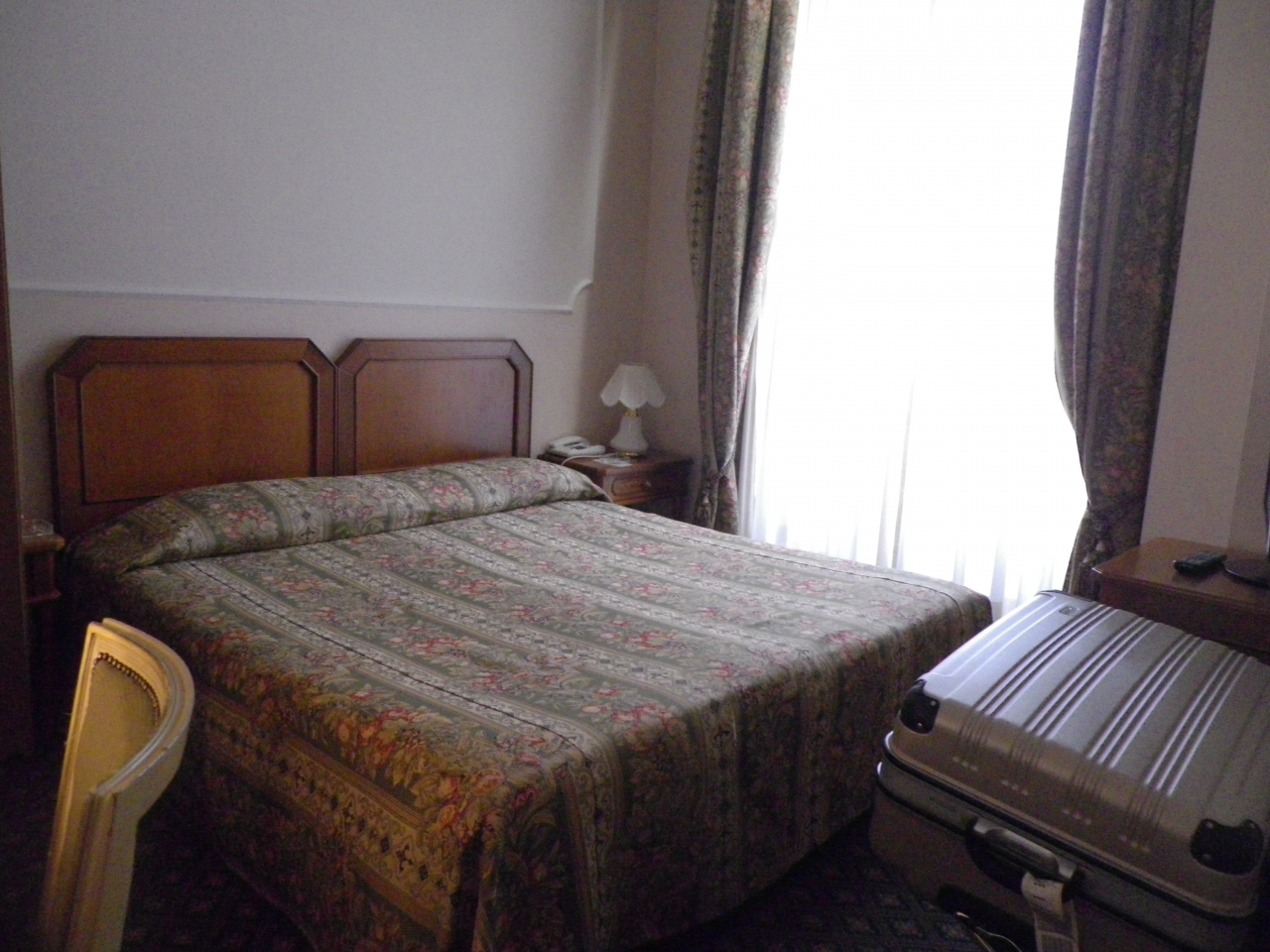 総面積は狭いけど、天井が高いので圧迫感は無い。色合いが落ち着いて可愛いセンスの部屋。部屋自体のメインライトが無く、デスクと両ベッドサイドに同じライト。カーテンを開けないと暗い。メイクはバスルームで。ホテル通路が迷路みたい。でも好き。通路の壁に並んだ小さな額縁のセンスがとても良い。スリッパ有り・ガウン無し・歯ブラシ無し・女性用アニメティー充分・エレベーターが2重(希望階に着くと、内側のドアが開き、自分で重いドアを押し開ける。(古風な感じで好き)スタッフは全員最高。気取って無くて親切、温かさを感じる。夜の食事は1F(イタリアは0階)の隅っこで、バー兼レストラン。スタッフと談笑しながらの食事も又よし♪チキングリル(パン、ポテトとほうれん草のソテー添え)美味しい。10ユーロ、プロセッコ(グラス)6ユーロ、コーヒーアメリカーノ(濃いけどさ)3ユーロ。ティー&チョコレートタイム(ティータイム)4:30~6:00まで、ルーフガーデンorバーor部屋(利用してないけど)7ユーロでお茶とドルチェのサービスタイム有り。