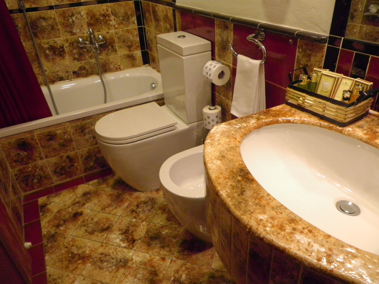 - バスタブは女性が全身横たわれます。(私155cmですけど)大理石張りで豪華。洗面所が高く、洗濯に便利(笑)香りが気になるので、入浴剤自参を!