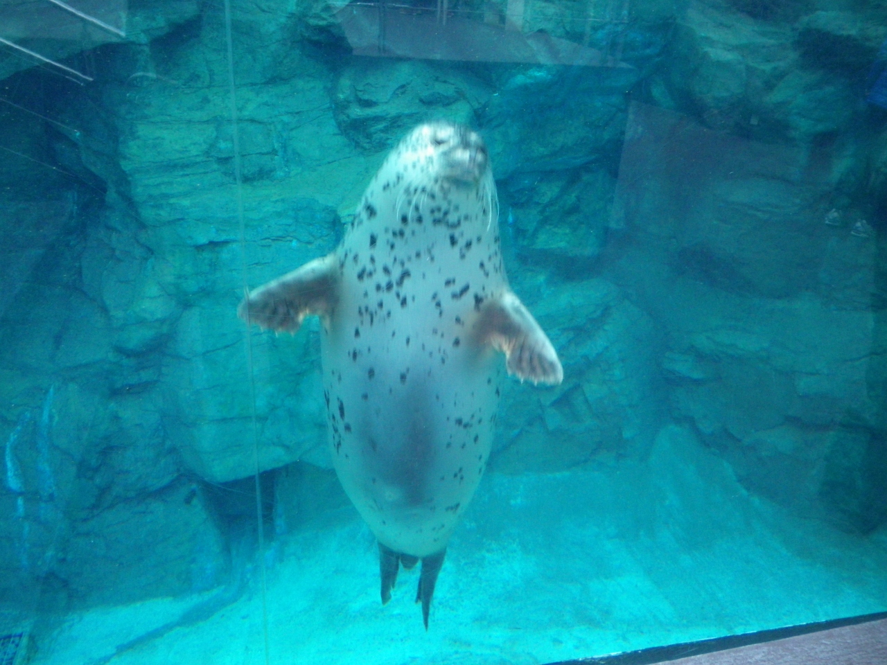 私が行った時は、ゴマフアザラシのクララちゃんは大きなお腹でした。(震災の週間前)先日同僚が行ったとき、希望ちゃんに逢って来たそうです。無事に出産出来て本当に良かった。温かく成ると室外のイベントも色々用意されてるみたいです。他の水族館に見られない展示の工夫がそこここに有って楽しいです。小さい子供も充分楽しめると思います。