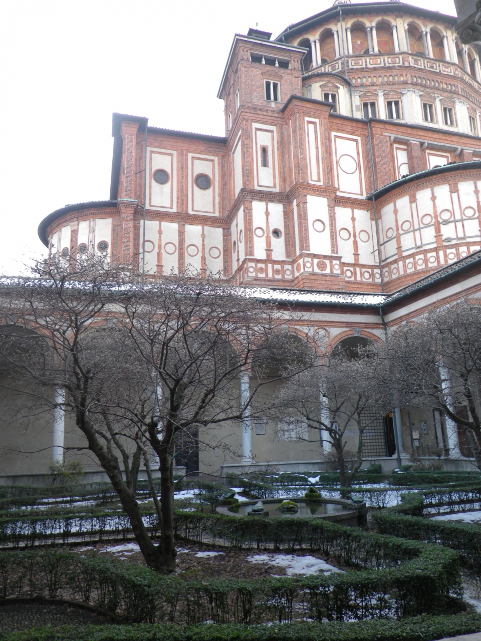 教会も素晴らしく、私が行った日(2012/2/17)は小礼拝堂でレオナルド・ダ・ヴィンチの特別展を開催しており、自筆メモやデッサンが展示してありました。10ユーロ