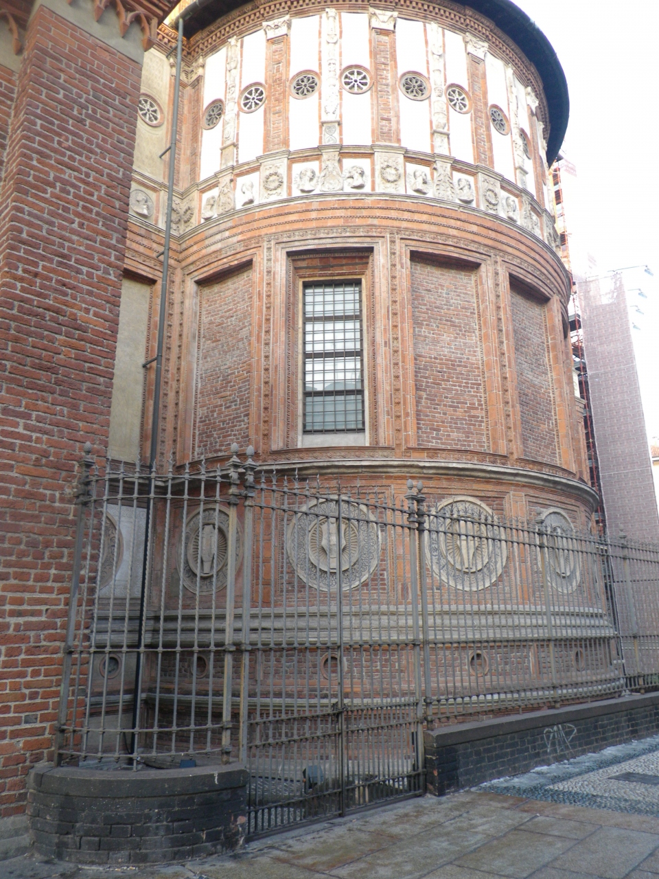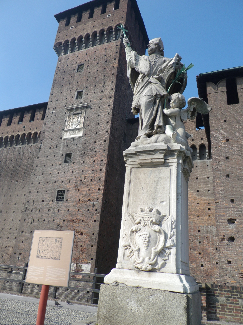 ミラノ旧市街の北西部の広大なセンピオーネ公園の入り口で、城壁の大きさに圧倒される。ルネッサンスの優雅な貴族の館と云うより、中世の堅固な要塞の赴きを漂わせている。