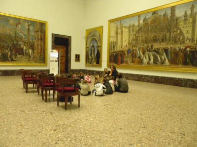 私も小学生の授業を遠巻きに見せて頂いたが、日本の美術の授業と違って、感想を自由に言わせたり、テクニックの説明をしたり、物語の流れを説明したり(だと思う)楽しいものだった。