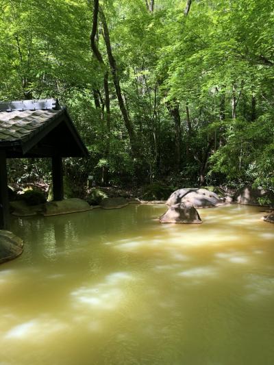 大地からの恵みであるお湯と、周りを囲む新緑、空から降り注ぐ太陽の光・・...