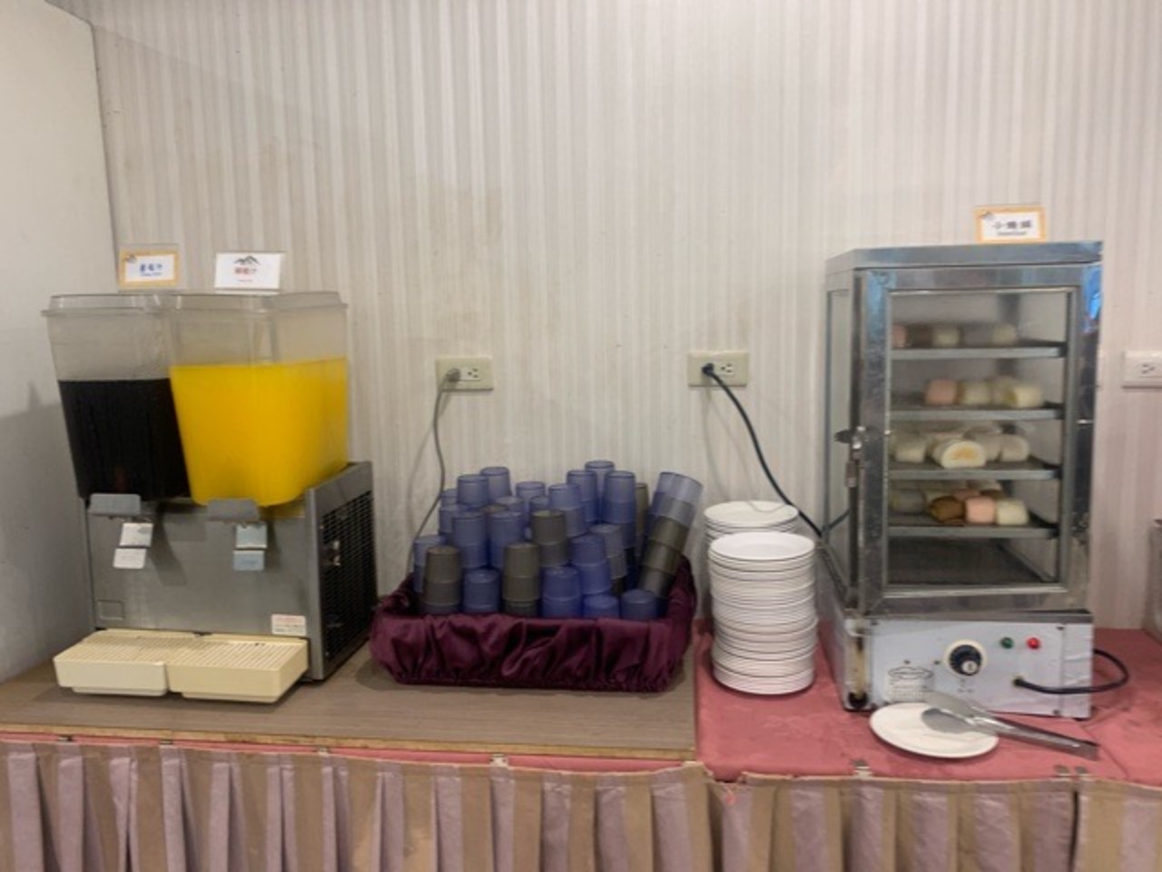 台湾人以外にもインドネシア人スタッフが研修で働いていました。スニーカーが壊れてしまい、フロントでボンドがあるか聞いたら、親切に貸していただいたので助かりました。朝食は食べ放題でしたが、台湾らしい朝食でおかゆや、肉まん、包子類などがありました。台湾ぽいなと思ったのが、野菜は炒め物が2種類あり、ゆで卵も人気でした。