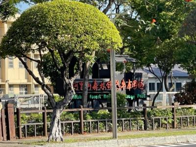 ホテルから歩いて到着しました。だれでも無料で入れるスポットで、実際に走っている阿里山森林鉄道が敷地内を走っていくので、カメラのチャンスです。実際にカメラ小僧が何人かスタンバイしていました。緑も多かったです。