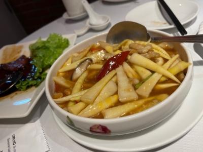 リッチなレストランで、日本の有名人も結構訪れていて、写真がお店に飾られていました。メインの料理は味が濃かったので、残ったレフトオーバーをテイクアウトしましたが、蟹のおこわはしょっぱくて、冷めても美味しかったです。