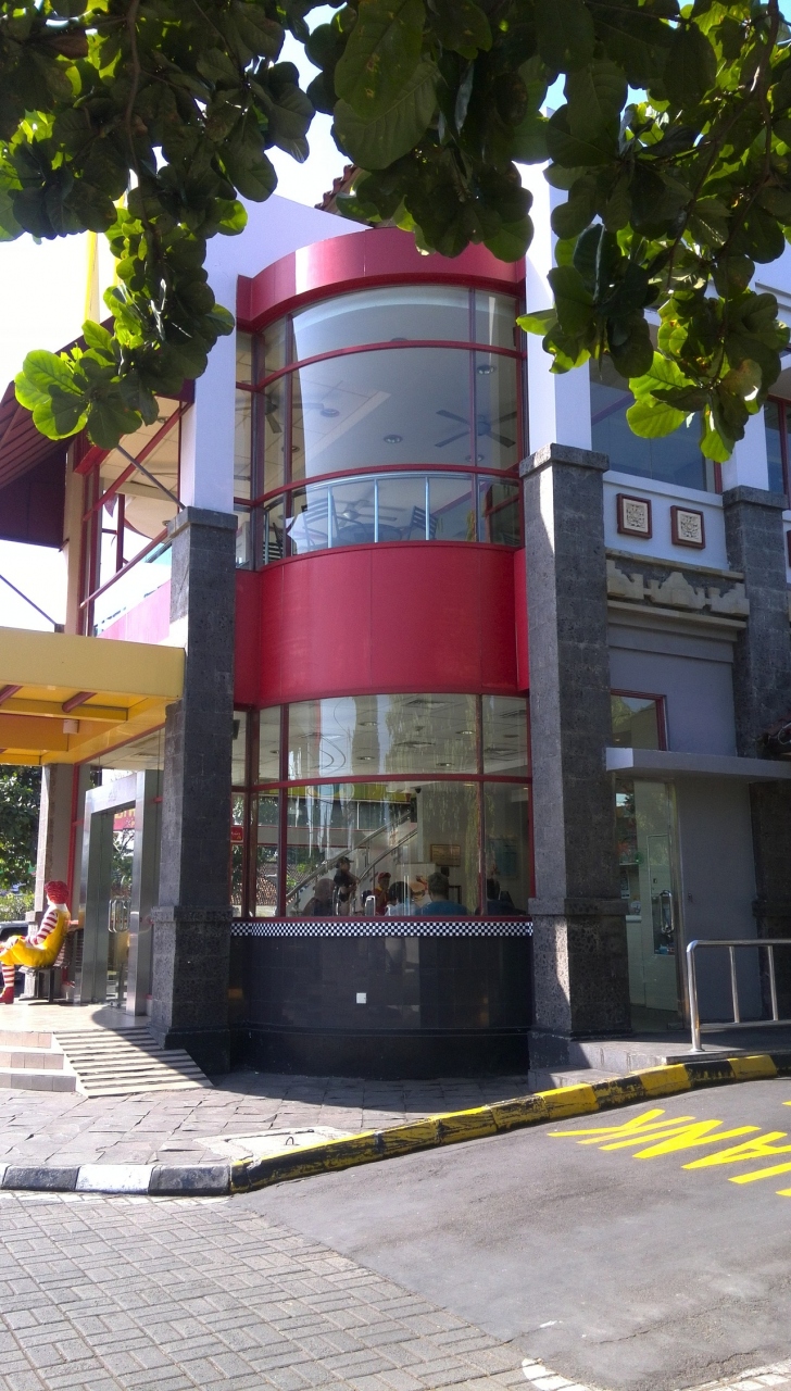 バリで辛いものにあたったのか下痢と腹痛が続いた日のお昼に行きました。ちーずハンバーガーセットでドリンクをFRUIT TEAにしました。メニューには下1けたまで値段が書いてあってめんどくさいなと思ったのですが、税かサービス料が足され、綺麗な数字の価格になります。世界共通の味に感謝!おなかもくだらず!