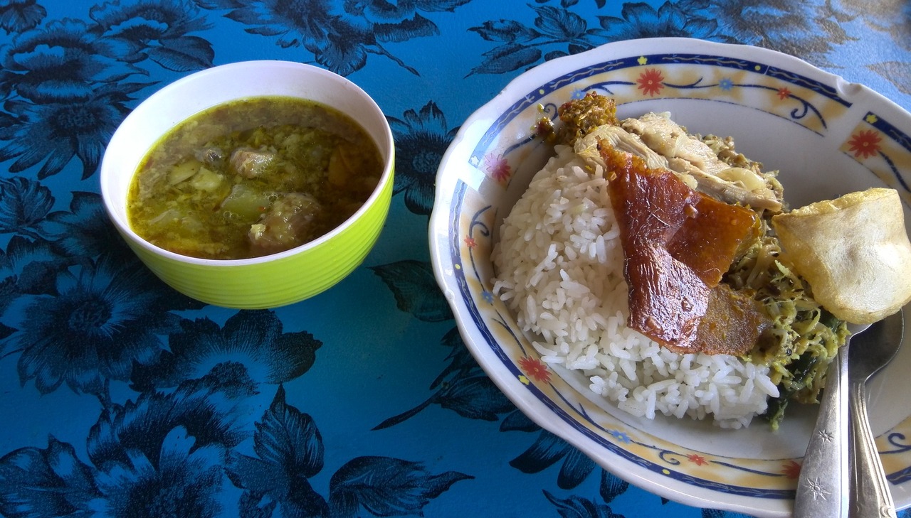 1人250円でお昼が食べれました。すごく奥まったところにあり、結構迷いましたが、大きい道にBABI GULINGという豚の絵つきの看板が一応あります。住所はあまり当てにしないほうがよいです。スタッフが英語を離せる子が1人いて、かろうじて通じました。かなりローカルで汚い気がして、衛生的に不安でしたが、食べたあとも下痢にならなかったので安全かと。スープが、今でも忘れられないおいしさでした。また行きたい。