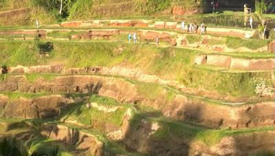 緑ではなくて、黄緑がこんなにも綺麗だとは思わなかった。埼玉の田んぼ風景を思い出しました。バイクでひたすら道を登っていき、着きました。カフェ?が見晴らしのいい所に陣取っていますが、椅子に座らなければ歩くのは自由なので、写真を撮って帰ってきました。昼に行くのも良いけど、夕暮れに行ったので夕日が反射して綺麗でした。