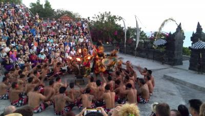 ウルワトゥなんですね・・・ここはケチャダンスが一番良いよとバリに住んでいる日本人の方に聞いていきました。もちろんバイクでひたすら走りました。いやはや標示の少ない所を口伝えでたどり着きました。面白かったです。サルにサングラスを取られた人がいました。冗談ではありません。3人くらいいました。気を付けてください。ケチャダンスは2000円だったかな?チケットを買って入ります。寺院見学料とは別です。