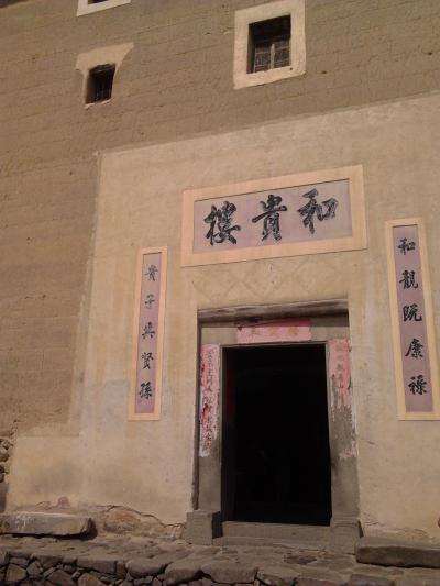 土楼の1つです。和貴楼。玄関というか入口にちゃんと漢字で名前が書いてあります。この名前を見れば、他の土楼と区別ができます。世界遺産なので、どうしても見たくて現地のちらしを見かけて自分で電話してツアーに申し込んだので日本人は私たちだけ、何かと気を使ってもらいました。太陽をさえぎるものがないので、日傘を持って行って良かったです。周りは田園地帯の風景が広がっていました。実に面白かった