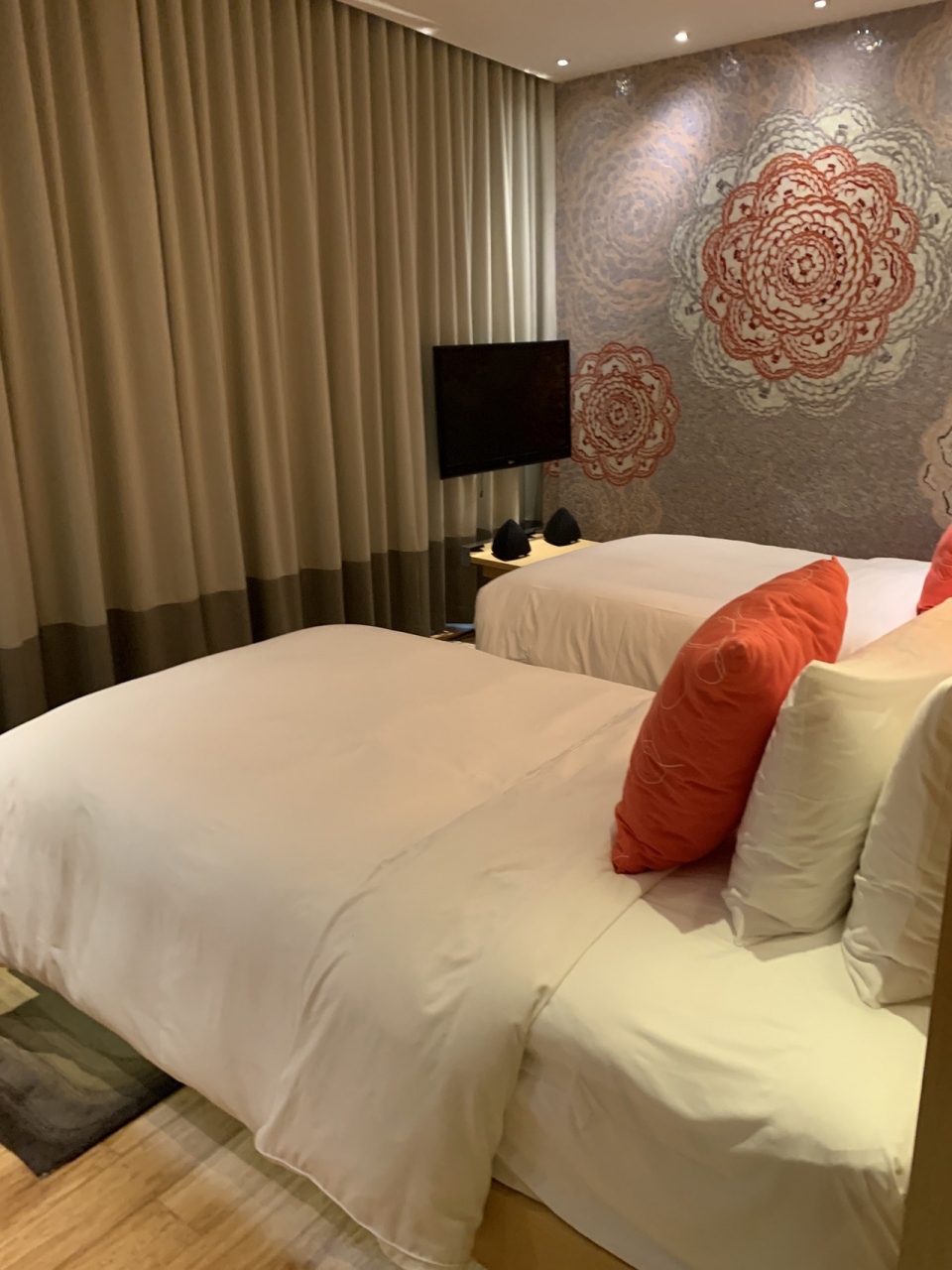 団体ツアーで泊まったホテルです。部屋は白いシーツもタオルもしみなく、清潔で広々としていました。周りは、他にも温泉のある高級ホテルがありました。温泉の質は良かったです。朝食もそこまで期待してなかったが、中華のお粥はおいしかったです。