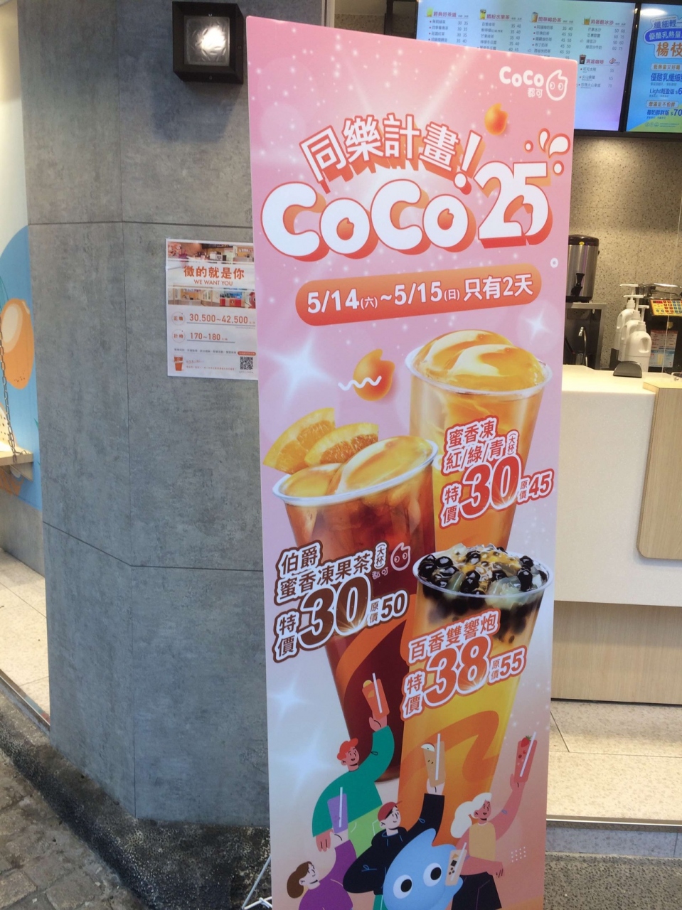 日曜日の夜に永康街にご飯を食べに行ったので、家族連れが多かったです。ベビーカー連れの夫婦や足の不自由なお年寄りのおじいちゃんおばあちゃんまで、みんな台湾人はCOCOのドリンクが好きなんだなと思いながら、自分も並びました