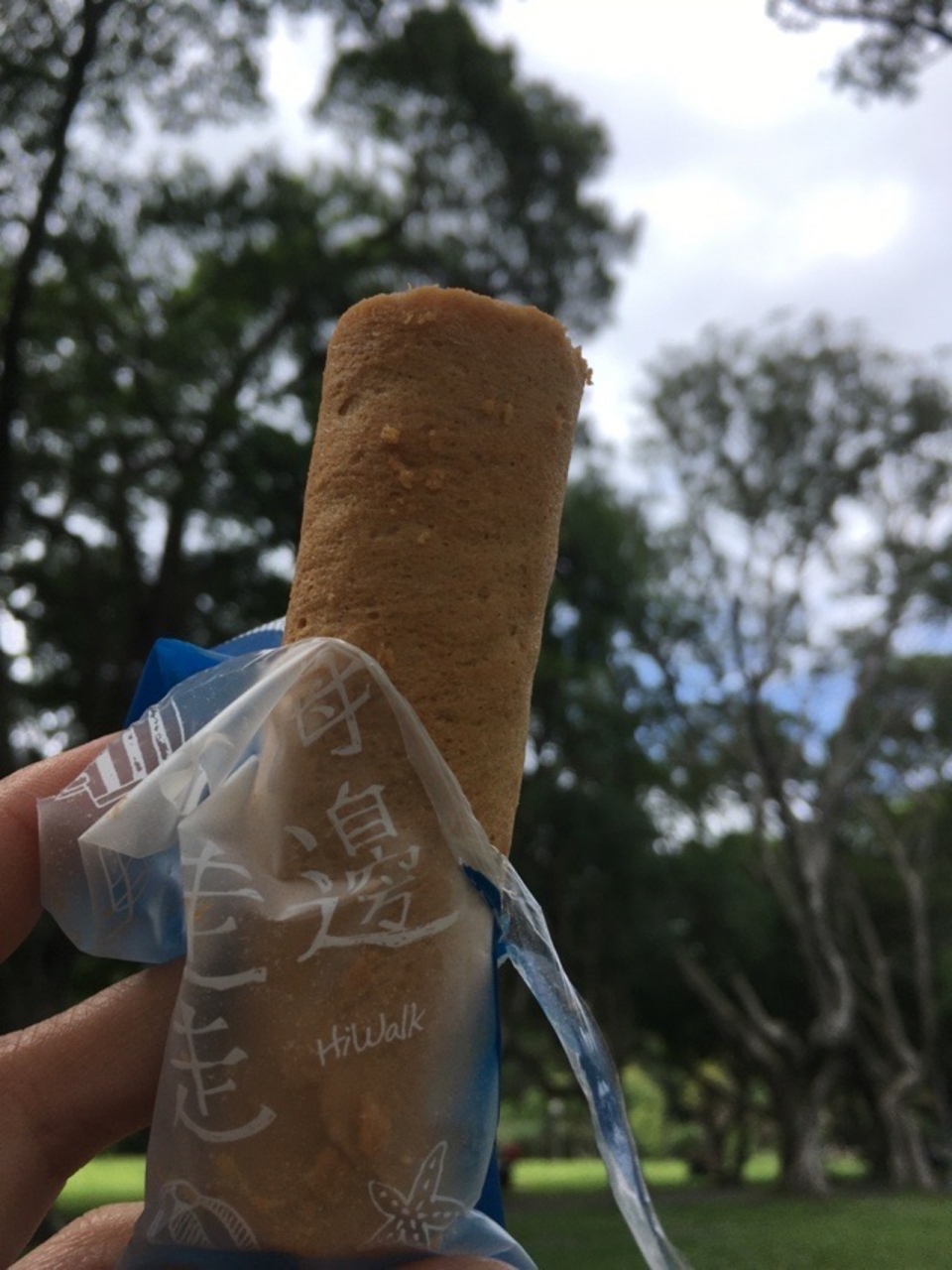 淡水老街の大通りに面していて、周りは夜市の様な賑わいでした。看板メニューのエッグロールは、濃厚なピーナッツクリームが入っているものもあり、外側の皮が特にサクサクしていて、中はしっとりな食感がおいしいお菓子です。