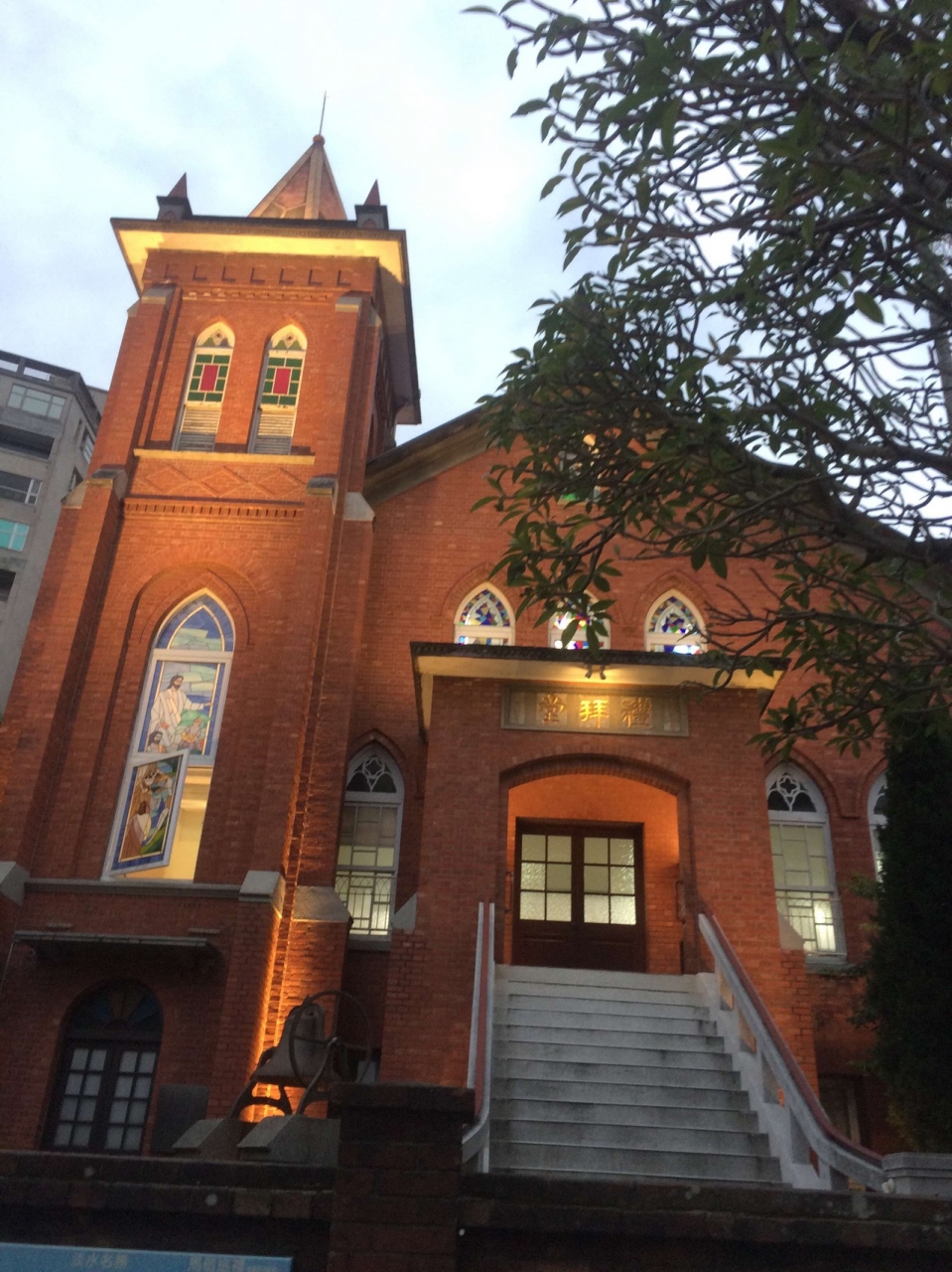 台湾にいると、中華なお寺や赤いちょうちんで飾り立ててあるお寺ばかりが目に入りますが、落ち着いた教会で立派な建築物でした。デザインがヨーロッパ風で独特でした。目を見張り、おしゃれな写真を撮りまくりました。