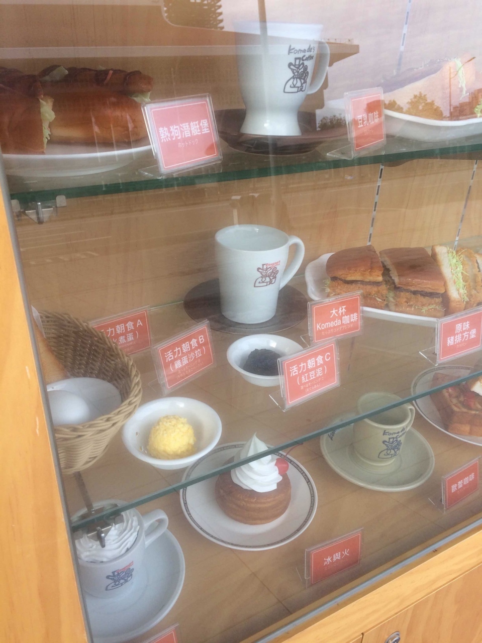 台北駅からひたすら散歩して、歩いて行けました。だいぶ歩いたので、ホッと一息休憩を兼ねて人間観察も楽しみました。店内のポスターと日本の昔な感じのレトロな喫茶店風のカップがちょっとノスタルジーを感じさせてくれました。