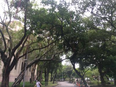 二二八和平公園の東北側にあります。個人的には、下から見る涼亭よりも、国立博物館の廊下の窓から見える涼亭のほうが、全体が見えるのと、ガラス越しで見えておしゃれな感じが深まるので好きです。周りは池と緑です。