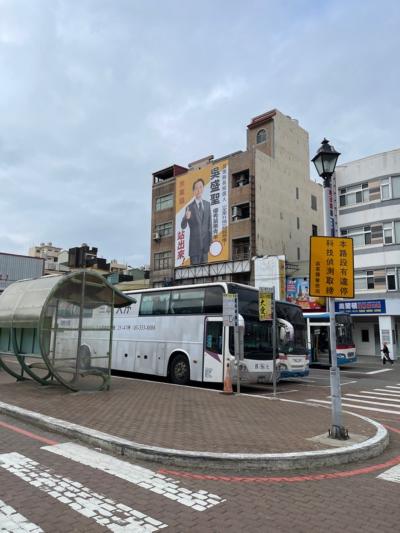 駅前にはロータリーがあり、そのロータリー前から観光用の台湾好行バスが出発する感じでした。他にもコンビニがあります。親子連れがパネルで写真を撮っていました。屋根があるとはいえ、やはり屋外扱いで暑かったです。