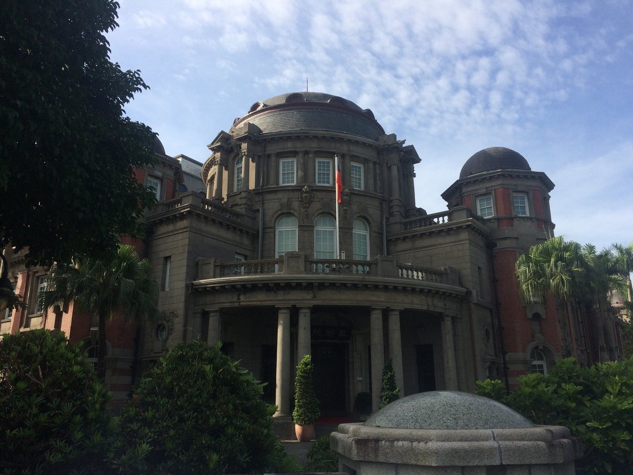 日本統治時代の建築物です。工事用のシートがかけられていた修復工事が終わり、今も定期的に手入れをされて、大切に保存されていました。内部は、今も政府の監察機構が使用しています。実際に、告訴しにくる人用の窓口がありました
