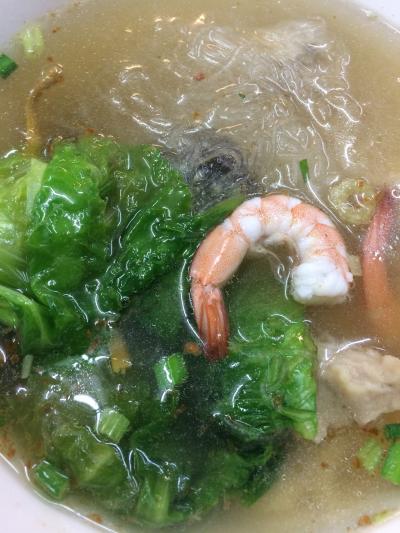 注文すると、先にお会計する必要があります。小さい野菜のおかずが35元から50元で、種類が豊富でした。一応日本語の説明もあり、簡単な野菜の名前が書いてありました。看板料理は、八宝冬粉で海鮮が沢山入ったスープでした