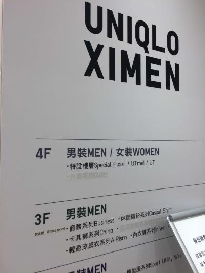ユニクロ西門店はXIMENと表記されていました。地下1階から4階までありましたが、4階はもうほとんど商品がなく、閑散とした感じになっていました。1階にはその季節の売りの商品が並んでいました。サングラスが安くなっていました