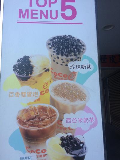 永康街を散策した時に、角っこにあるのを発見しました。台北市の他のところでも結構見かけたドリンク店です。売れ行きの良い商品トップ5があり、タピオカミルクティー、プリンののったものがありました。紅茶ラテにしました。