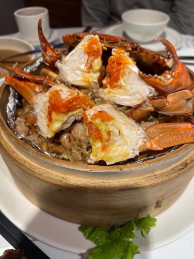 12時に友人が予約してくれて、林森北路という縦の通りから少し入ったところにありました。店内は、窓がありましたが、開かないようになっていて1階だったので、太陽もそこまでは入らず、暑くなかったです。蟹おこわ、しょっぱかったです