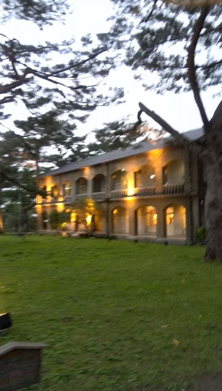山上にあるホテルで、さらに上は徴兵制度の訓練所になっているそうです。景色が綺麗で結婚式の写真を撮っている韓国の夫婦がいました。外も公園になっていて観賞用のパイナップルがあり、星も観察できます。とても良いホテルです。ケーキが1個100元くらい、イチゴ大福もありました。