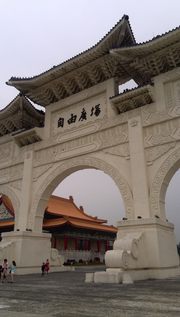 高さと中華な青と白の色合い、形が大好きな場所です。この門の前を下水からあがってきた大きなねずみが通り過ぎていったのを見れたのは、ラッキーだったかもしれません。子猫が走っていると思ったら、ねずみ。しかも門には自由広場の文字 笑 夕焼けととると綺麗です。