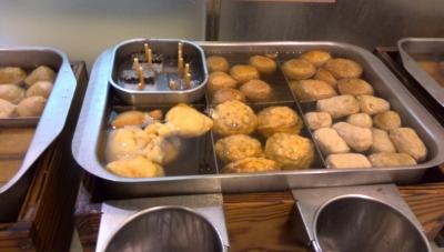 セブンイレブンは主に帰国間際にまとめ買いのために利用します。最後に寄るのは、パックやプチお菓子系、そして一度賛というメーカーのカップめんやインスタント麺がセブンには必ずあるので、買います。関東煮という名前でおでんもありますが、気持ち悪いのは豚?かも?の血と米を固めた物。衛生上、日本人はダメと思われますので、黒い物体はやめましょう。